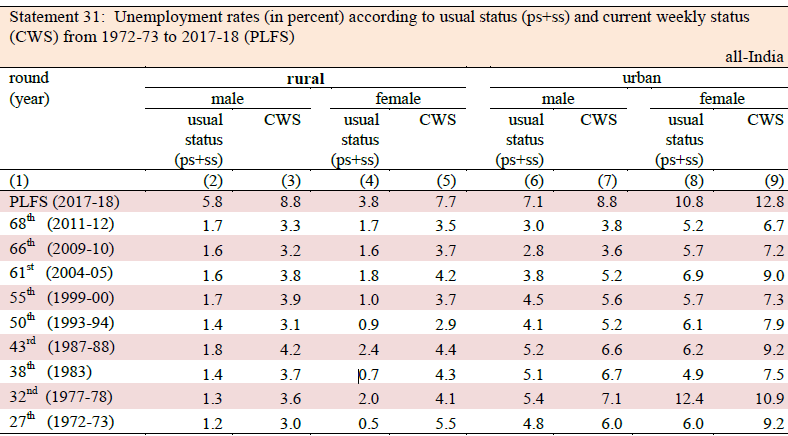 Table 1: Unemployment Rate In India (Periodic Labour Force Survey, 2017-18)